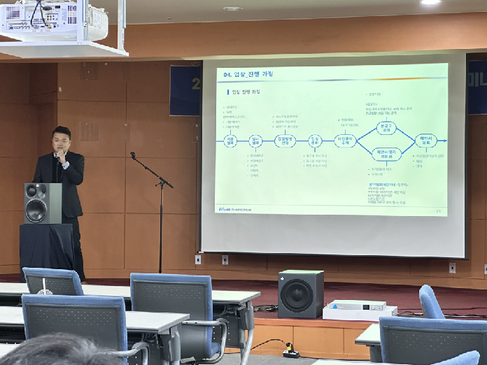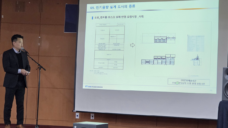 두 번째로는 (주)마노엔지니어링 이정운 설계소장의 ’소리를 설계하다’ 강의가 이어졌다. 회사에 대한 소개를 시작으로 공연장 컨설팅의 설계사가 어떤 과정과 자문을 통해 공연장 운영에 도움이 될 수 있는지를 먼저 짚어주었다. 음향 컨설팅의 필요성과 기능부터 건축음향 컨설팅, 전기음향 설계, 입찰 진행 과정, 전기음향 설계 도서 등까지 훑어보며 공연장 음향 컨설팅의 모든 과정 및 개념에 대해 설명하였다. 마지막으로는 강의 초반 공지했던 강의 자료 사이사이 숨어있는 귀여운 개구리 캐릭터 찾기 퀴즈를 진행해 스타벅스 카드를 증정하며 참가자들의 열띤 반응을 이끌어내기도 했으며, 질의응답 시간을 통해 궁금했던 점을 서로 나누며 강의를 마쳤다. ![]()