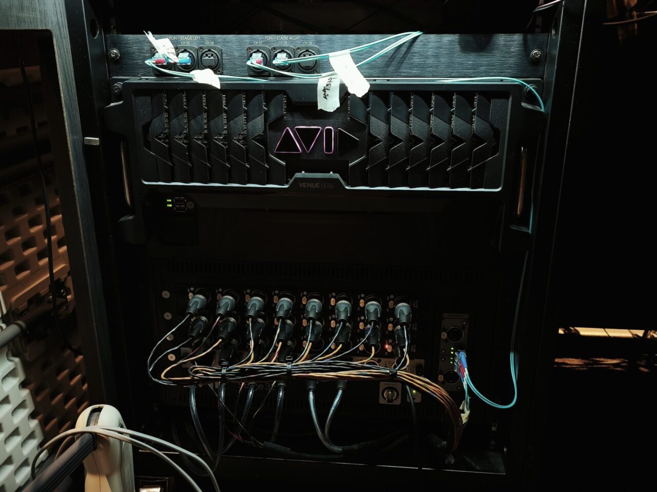 설계 자체도 공연장보다는 강당에 가까웠기 때문에 음성 전달 위주의 스피치 중심 설계이다 보니 DSP 역시 실제 시스템 컨트롤 역할보다는 단순 분배기, 즉 스플리터에 가까운 방식으로 운용되고 있었습니다. 메인 EQ 하나로 전체 시스템을 조정해야 하는 구조였기 때문에 공간별, 구역별 음향 컨트롤에는 분명한 한계가 있었습니다.