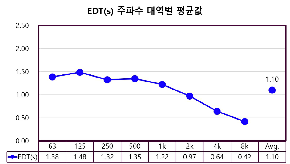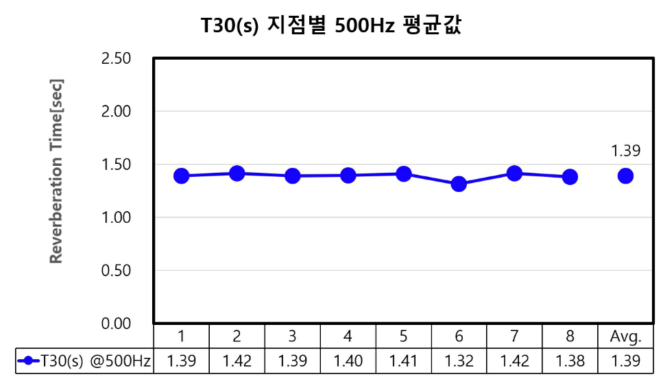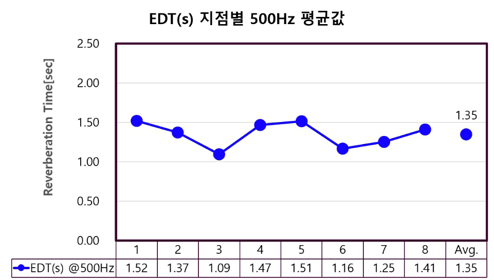 – 500Hz 기준 평균 EDT: 1.35초, T30: 1.39초로 측정